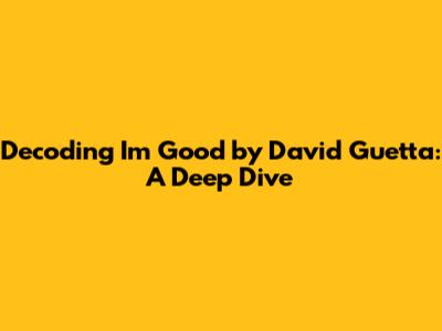Decoding 'I'm Good' By David Guetta: A Deep Dive