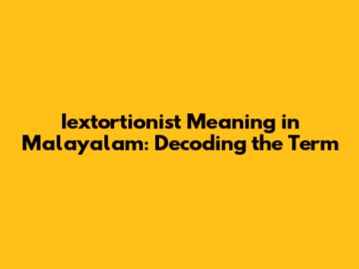 Iextortionist Meaning In Malayalam: Unveiling The Truth
